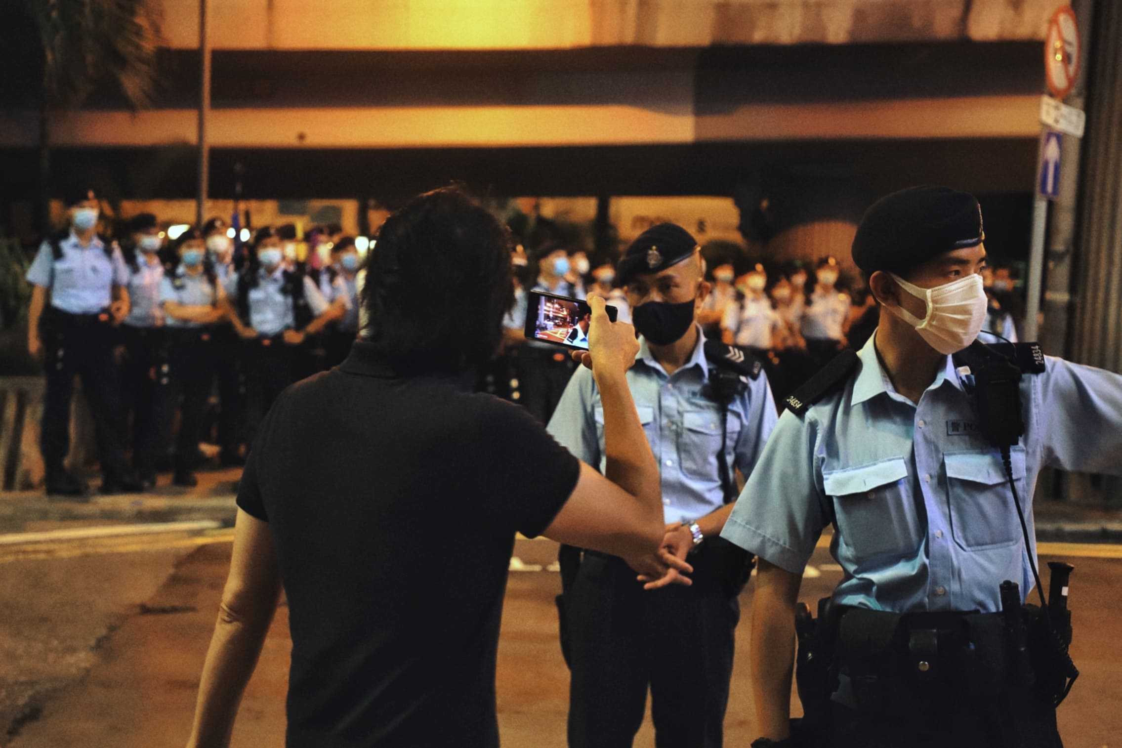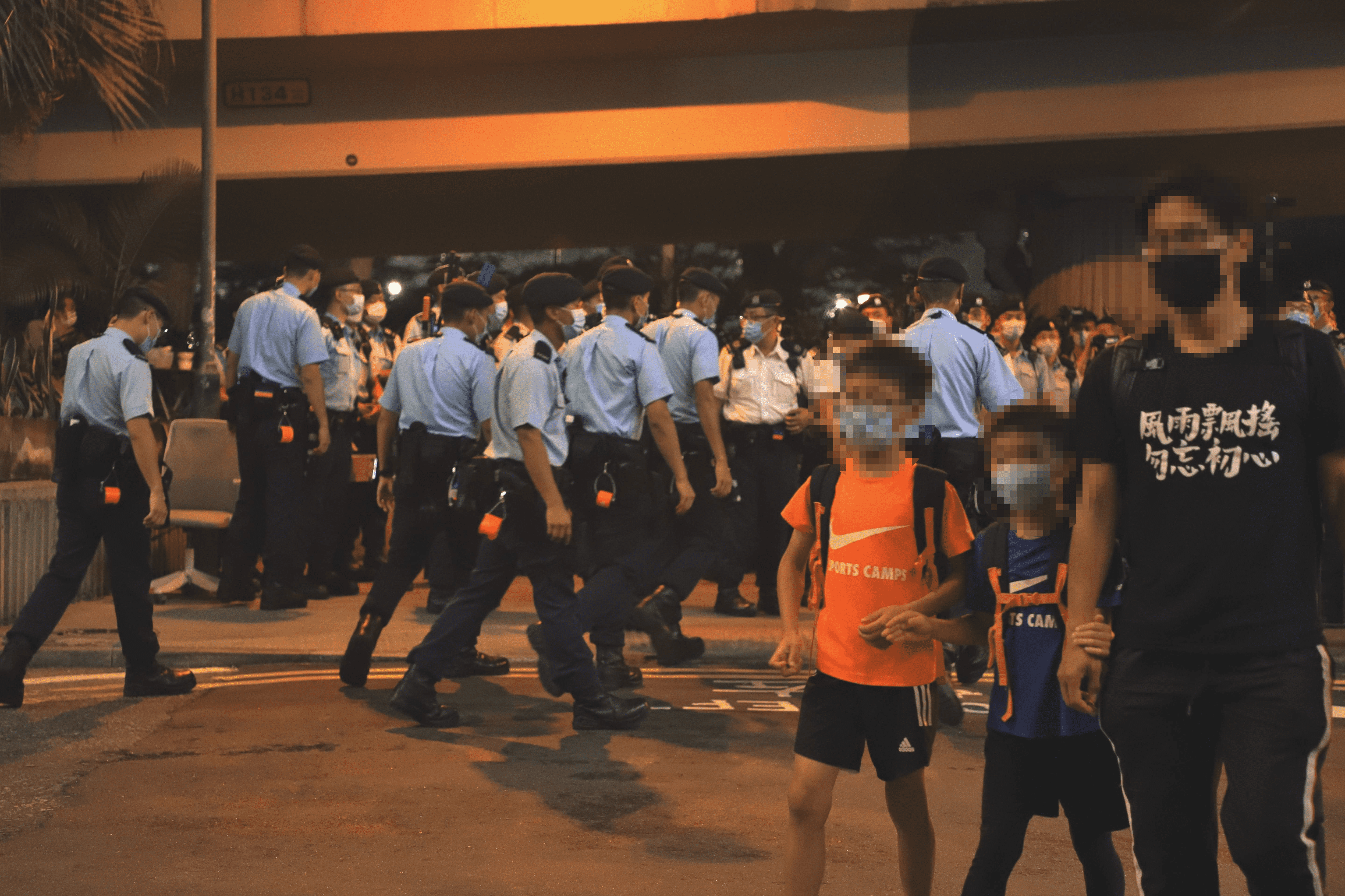 19岁的邓嘉欣(化名)在初中时参加雨伞运动,在高中时参与反送中,每年都参加六四烛光悼念集会。她和男友身穿黑衣,手持电子蜡烛,故意大摇大摆地在一群警察面前走过。