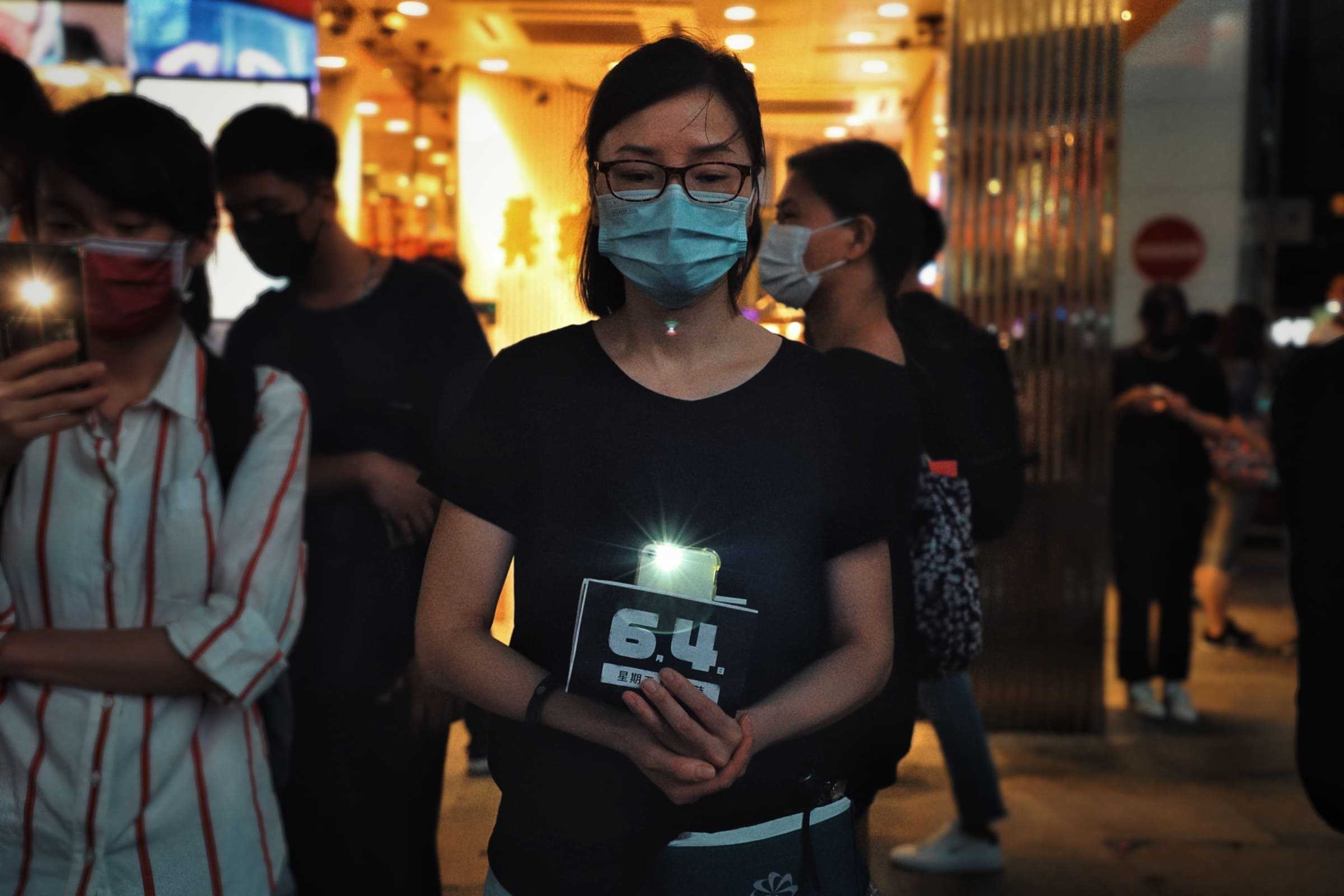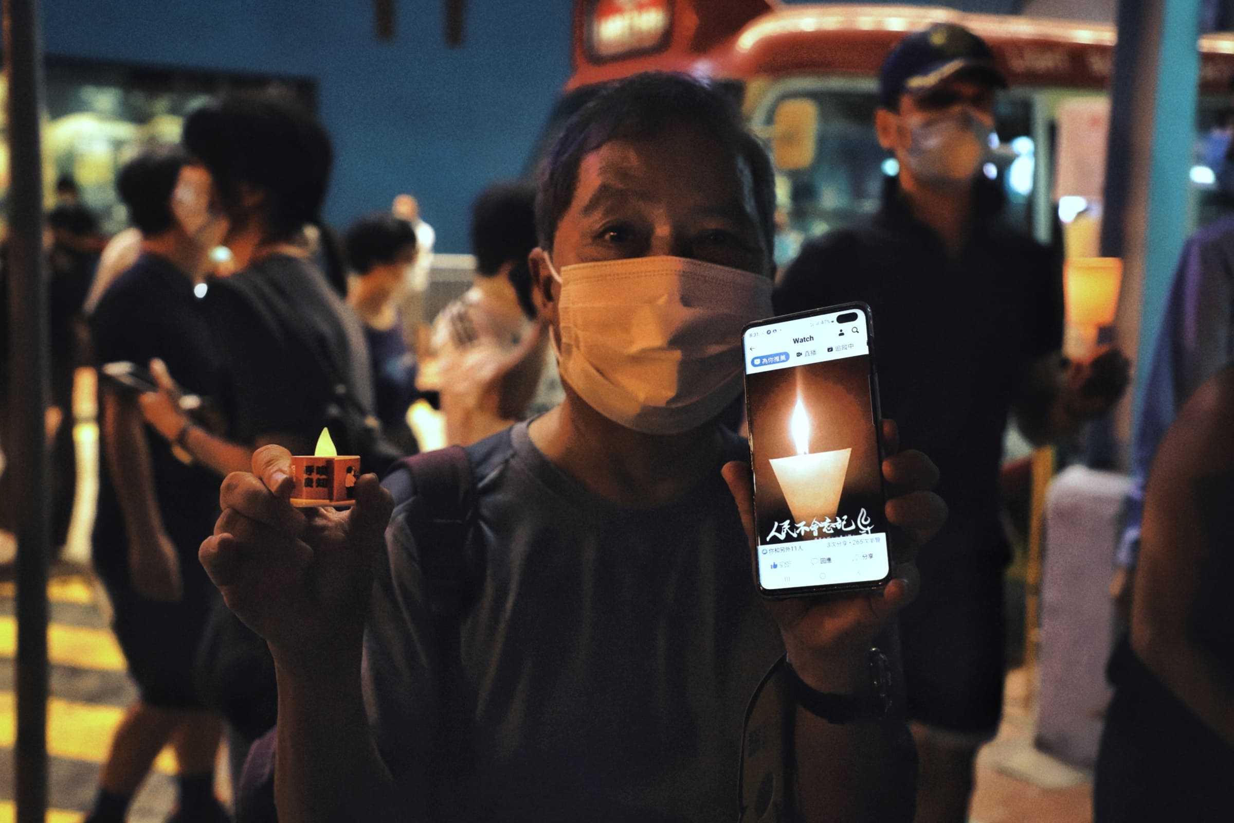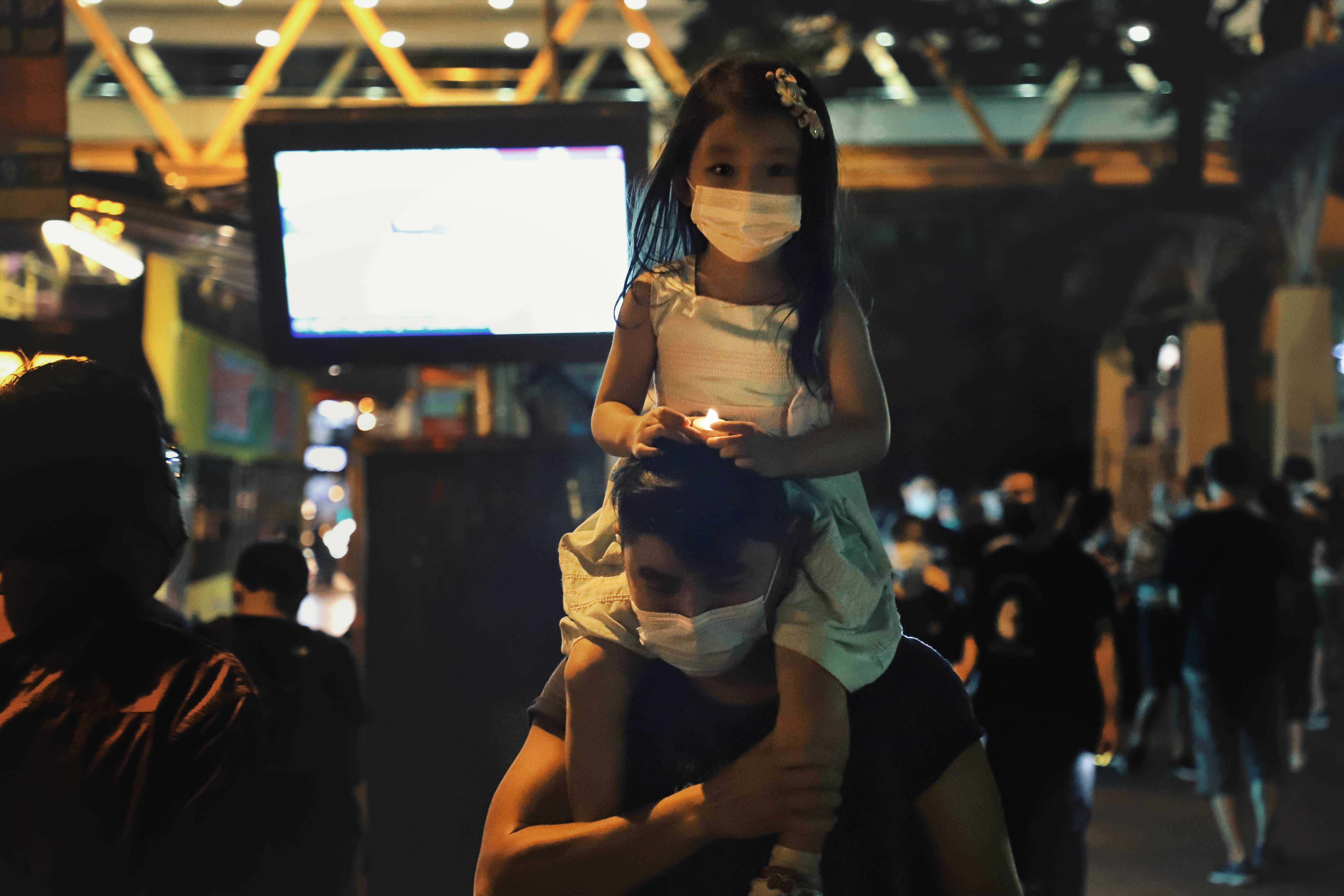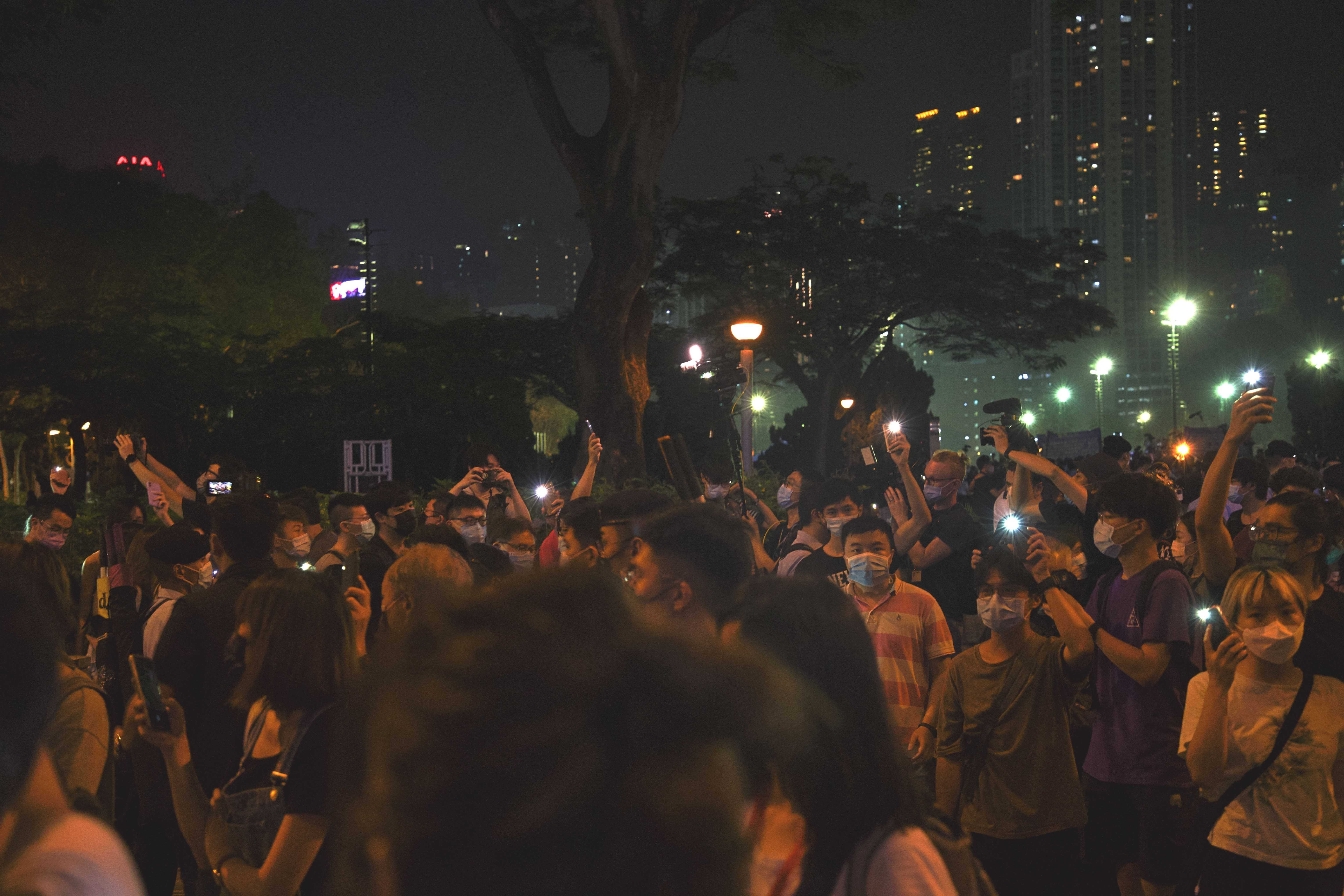 即使有国安法高压,且维园广场内部被封锁,但仍有上万民众来维园周边悼念。晚上8点,原定的悼念时间到来,人们一起打开手机闪光灯、高举蜡烛,烛光照亮了年轻的、或饱经风霜的面庞,寂静的维园被烛海与星光环绕。