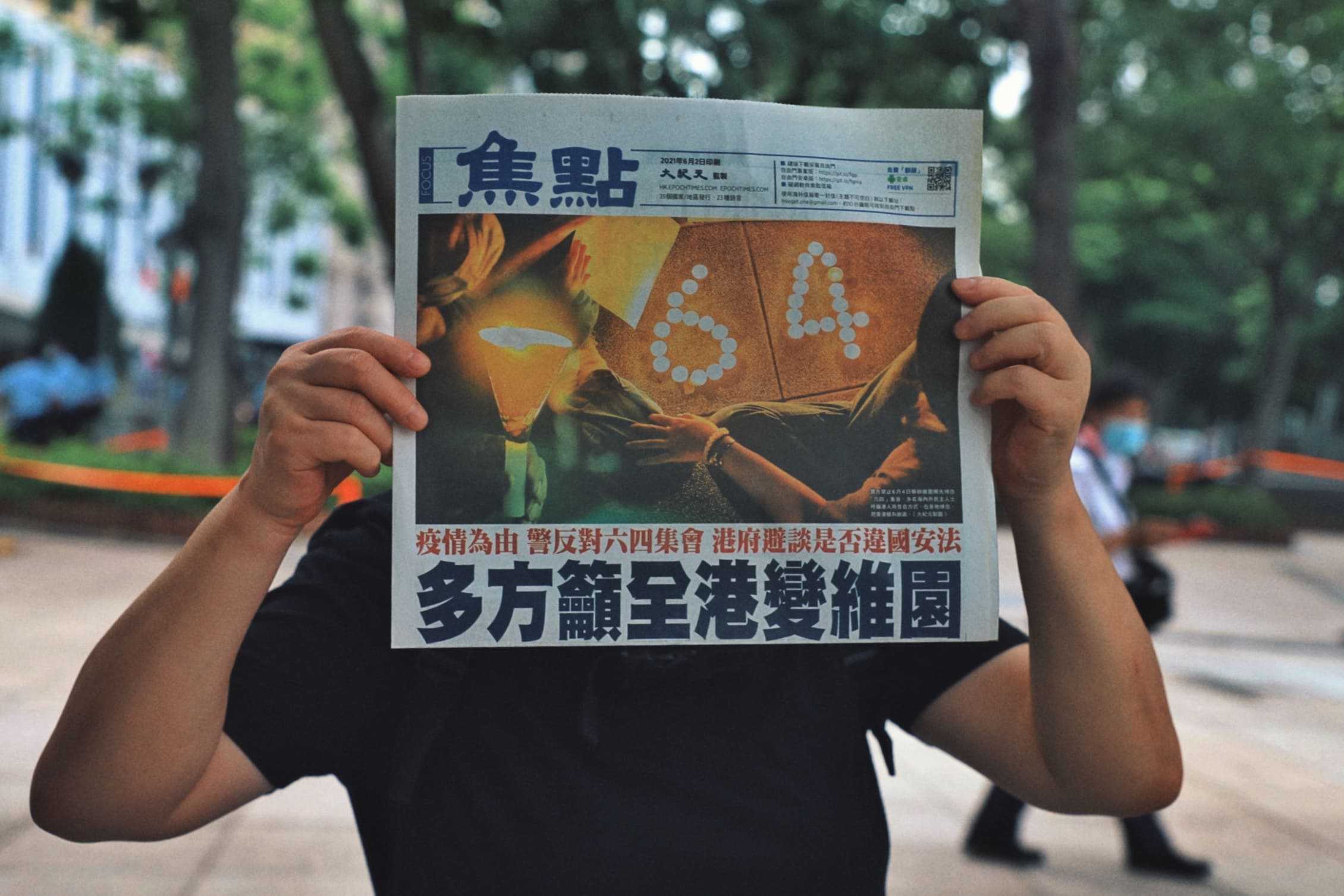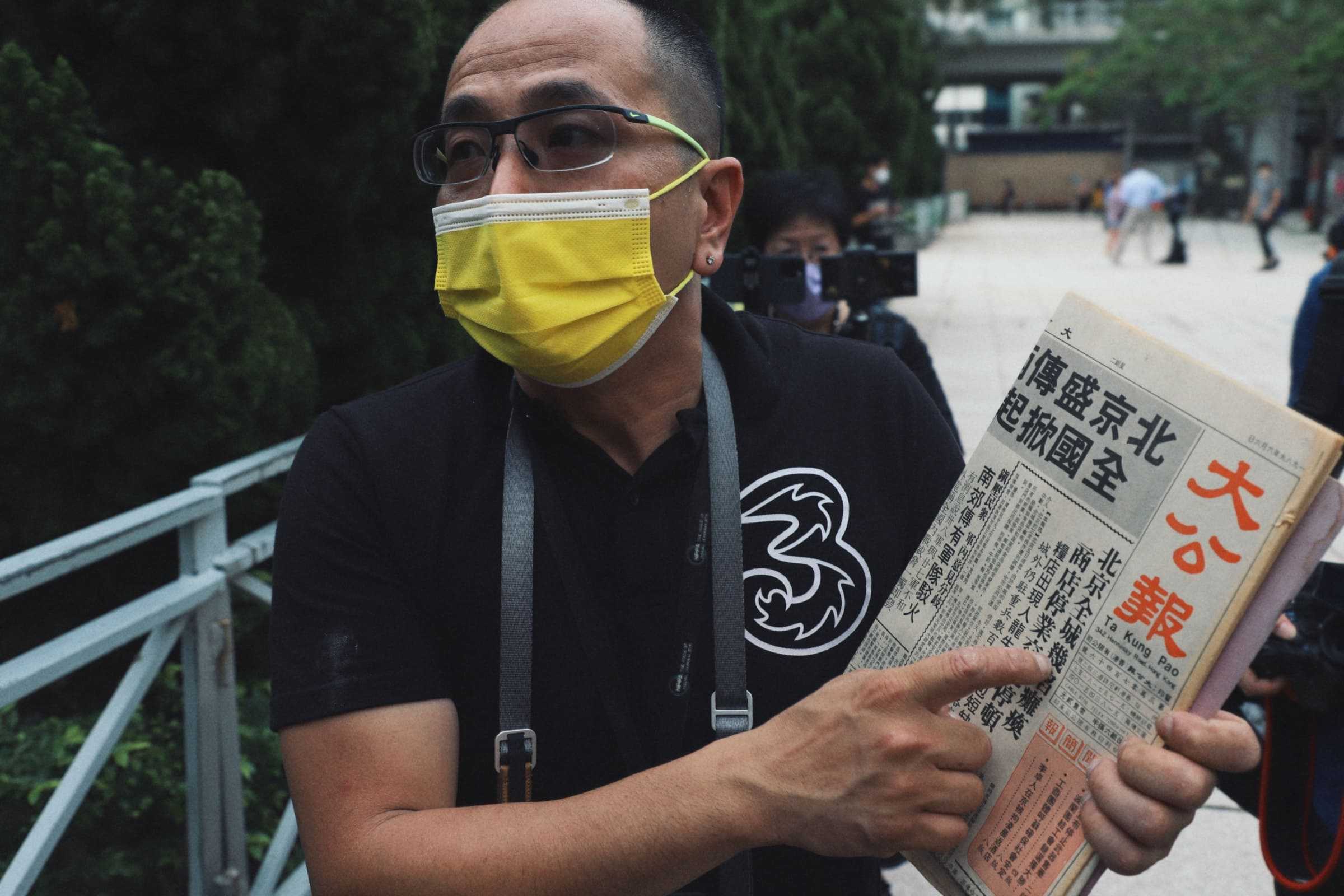 高登新闻记者胡家辉,在维园门口举起1989年6月6日的《大公报》头版,印有“全国掀起抗议镇压怒潮”的标题。他称《大公报》30年来立场翻转,从支持悼念六四到批评邹幸彤“为乱港分子辩护”,反映香港的“白色恐怖”已经来临。