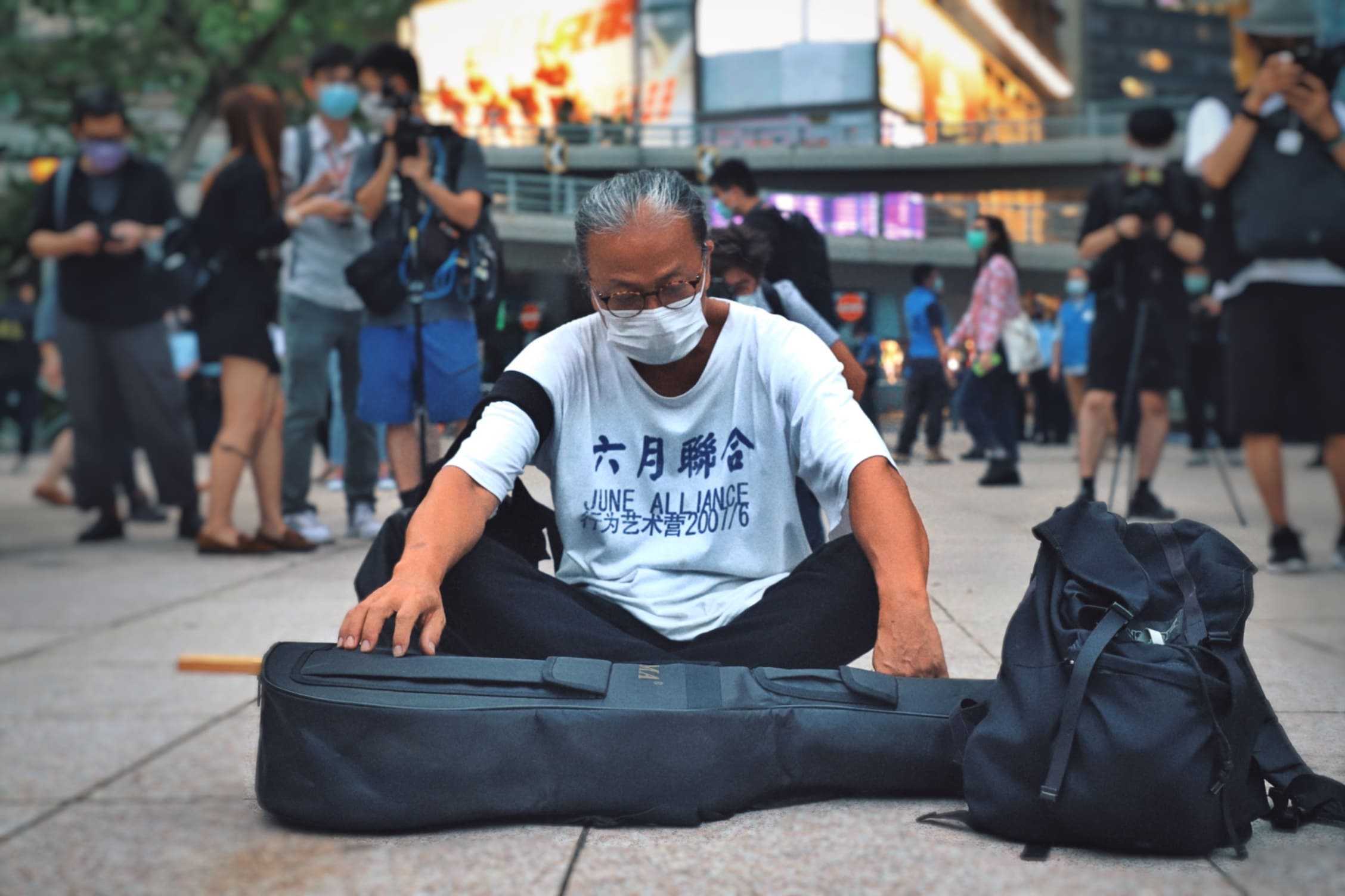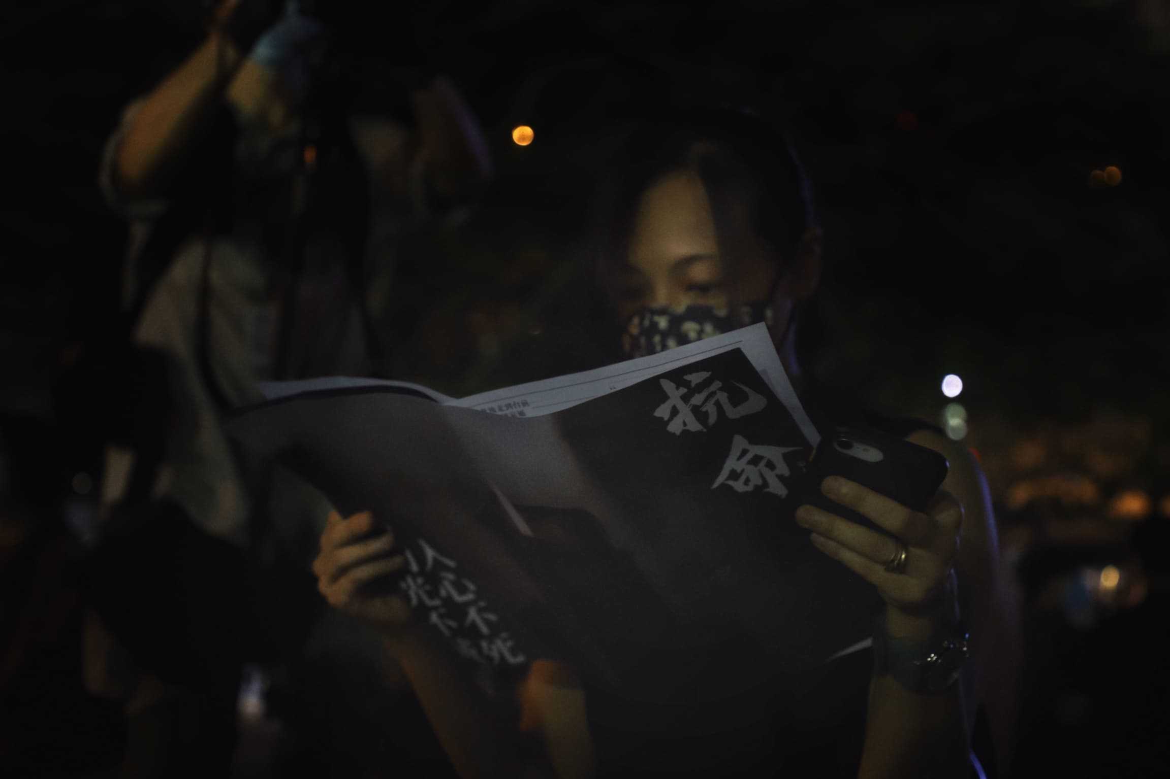今年,刘姨姨伫立于维园角落的黑暗里,独自歌唱。她哽咽,歌声戛然而止,微弱的路灯照亮眼里的泪光。“今年特别难过,你看,广场里空荡荡的,什么人都没有。”她说。
