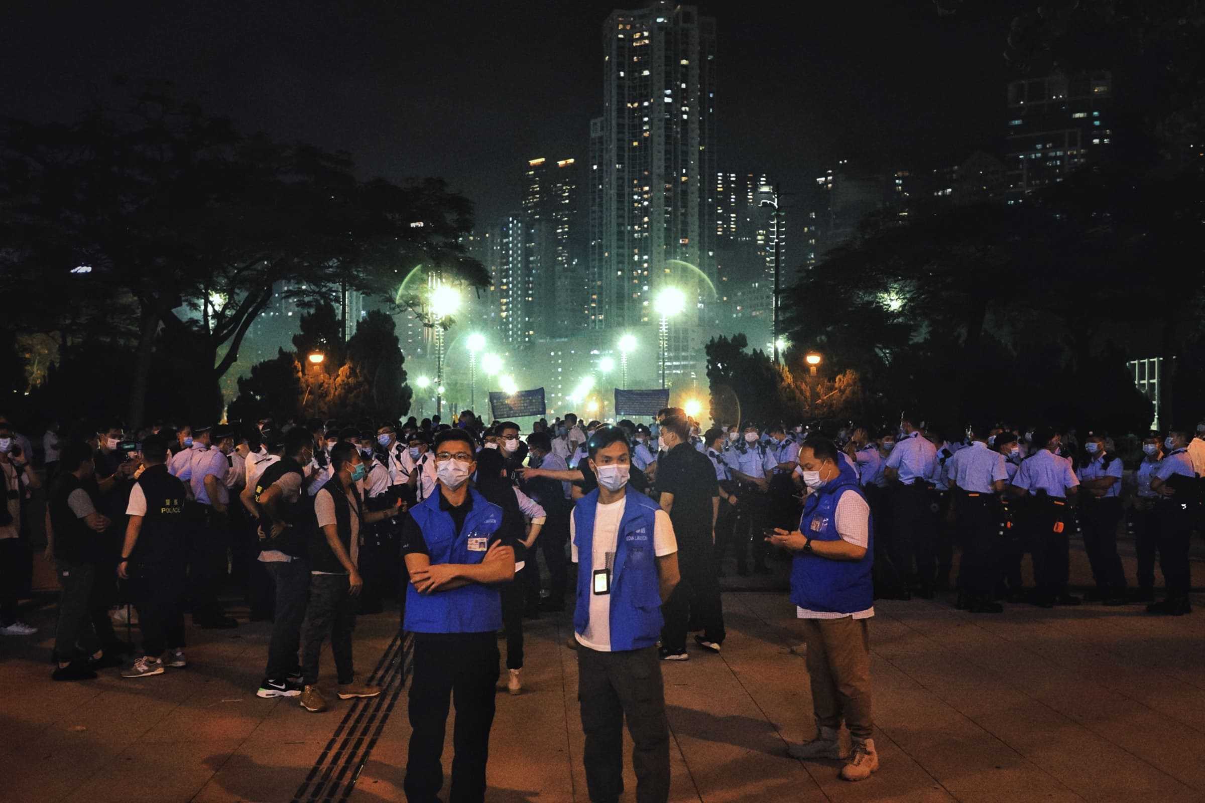 据多家媒体报道,约有4000警察驻守维园,警方于全港拘捕6人,先后亮蓝、黄、紫旗。蓝旗警告民众涉嫌非法集会,黄旗指集会者可能面临刑事检控,紫旗则警告民众涉嫌违反国安法。在铜锣湾,警方一度亮出橙旗(警告民众速离,否则开枪),2秒后收回。