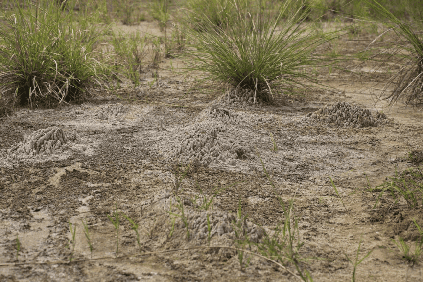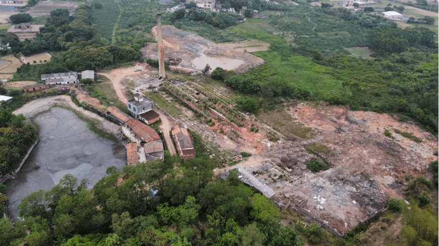 然而,实际上,这些砖厂并不具备危废处理资质。它们只是把一部分铜泥混进砖里,剩下的就堆放在砖厂。砖厂还放不下的铜泥,就随意堆放在村里的其他地区——以黄沙岗为代表的中转场就露天堆放了大量毒铜泥。