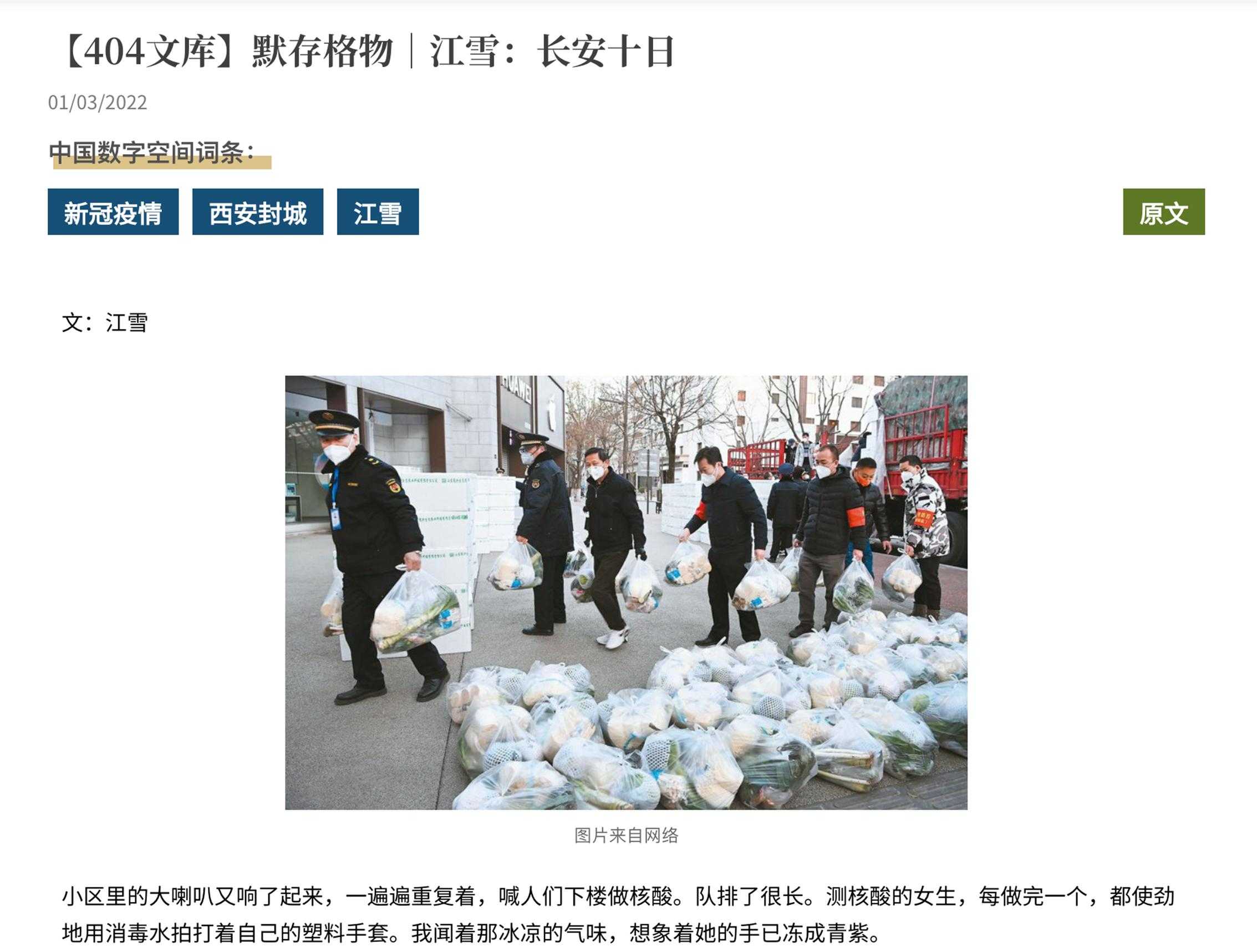 但是,刚才主持人也谈到了,对这么重大的事件,媒体的记录其实是非常少的。有兴趣的朋友也可以做相关的研究。两年前,在武汉封城的时候,有不少机构媒体去做了记录,像财新等都发出了很优秀的报道。记者在当地驻扎好几个月,做了全方位的、也有细节的报道。而这次西安封城我们看到,报道非常非常少。