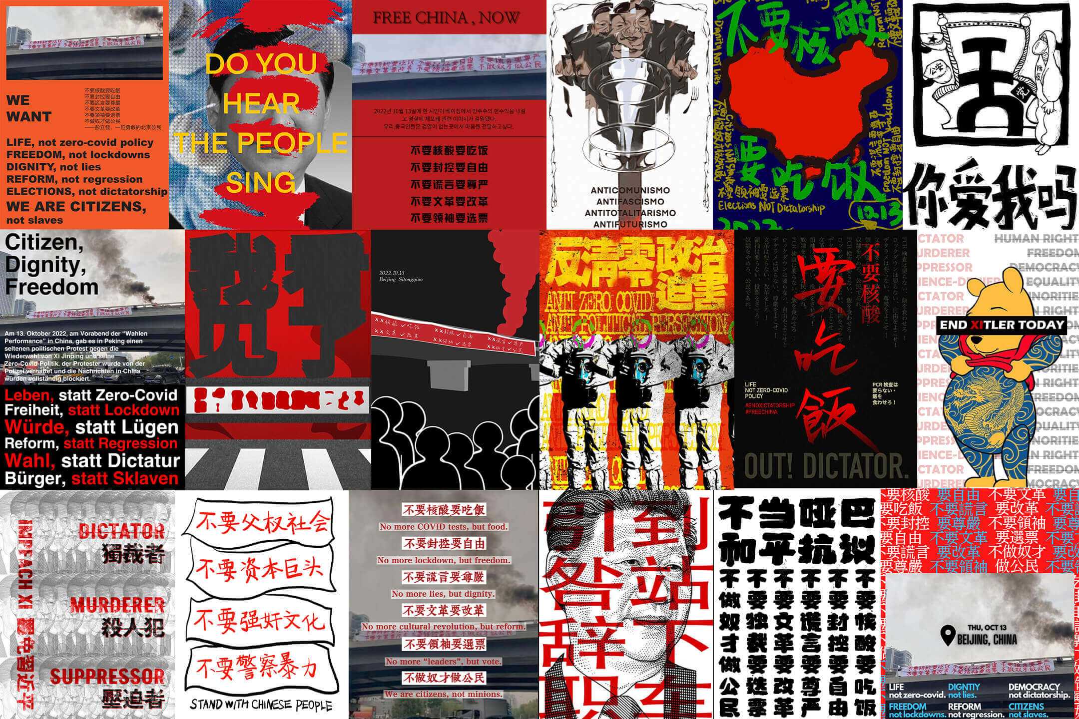 中国之内,人们用含混模糊的话语,在社交媒体试图传播点滴的消息,却遭遇大批的封号查禁。而在海外,受“四通桥事件”震动的一些留学生,开始用海报的形式,在自己所在学校的公告板上,或生活所在地,回应四通桥事件。这群学生行动者们在不断制造“回声”。政治表达的一腔热情,在跨越国境的审查制度、泛滥的民族主义情绪、以及潜在的网络暴力威胁扎根生存,同时还隐藏着对居住在中国大陆的家人遭受政治骚扰的一丝恐惧。